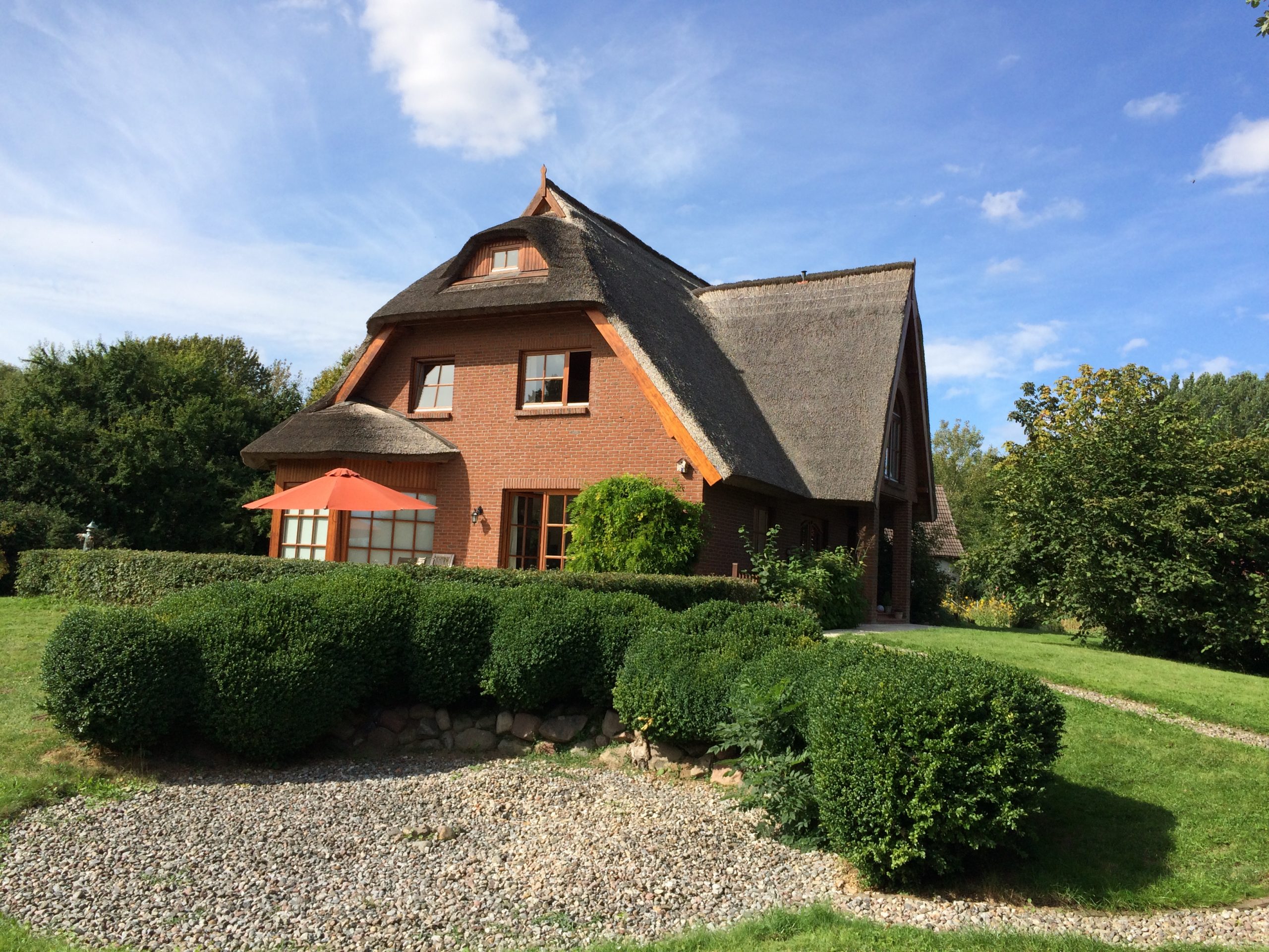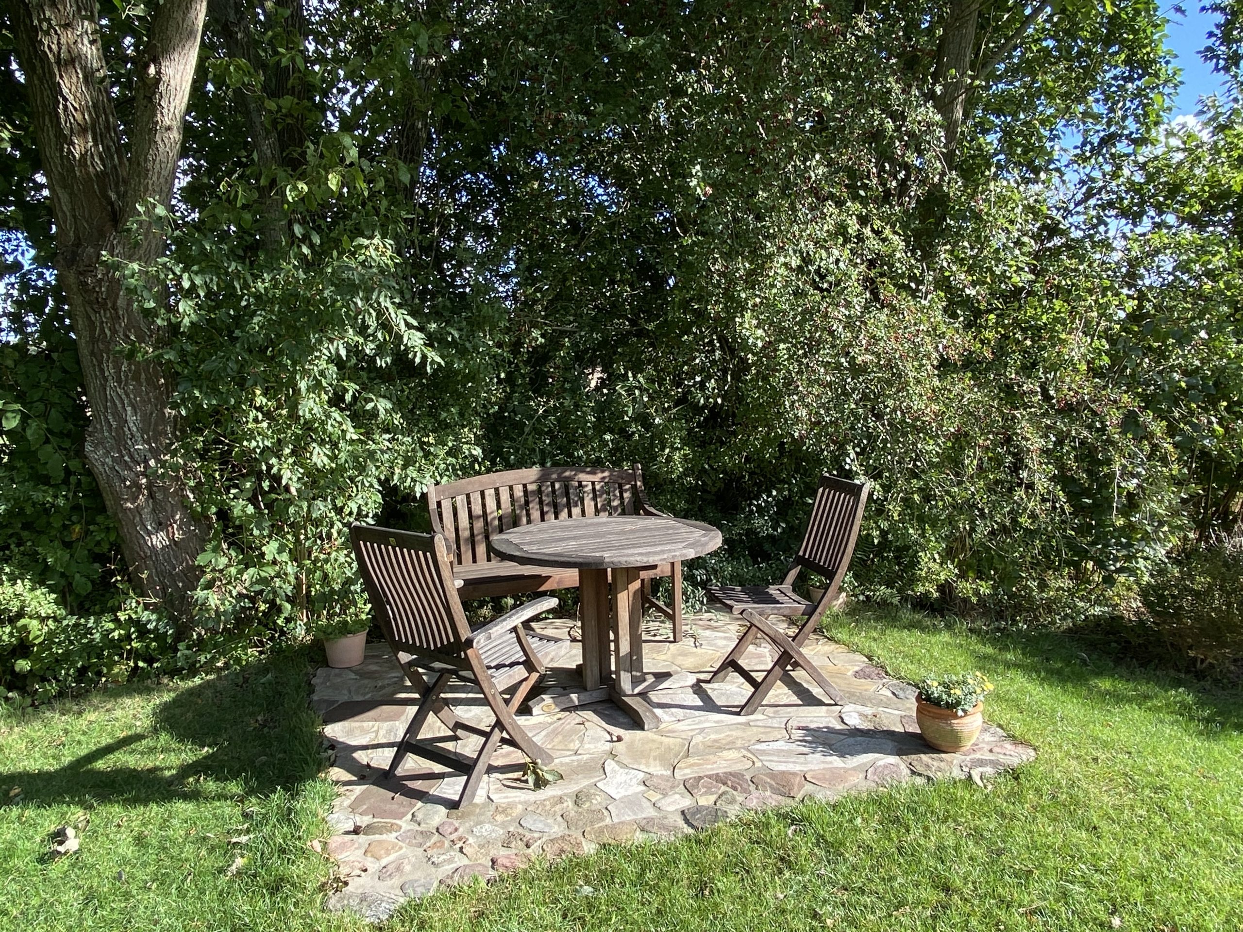 Fast das gesamte Grundstück ist von Bäumen und Hecken eingefasst, die nicht nur für Privatsphäre sorgen, sondern zugleich wunderschöne Ausblicke in die Natur ermöglichen. Die dichten Hecken ersetzen klassische Zäune und schaffen ein idyllisches Ambiente.