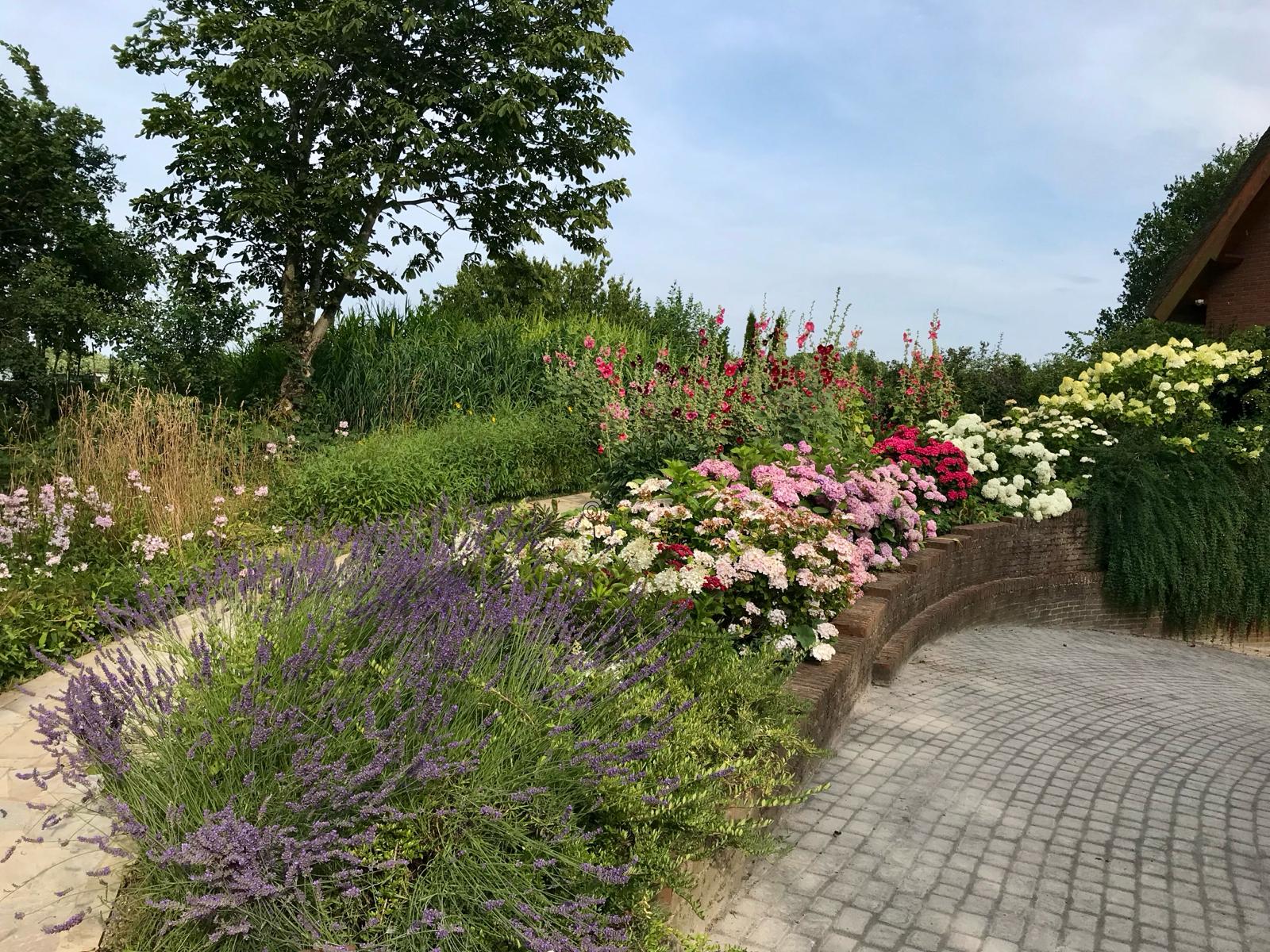 Der Garten ist mit einer Vielzahl attraktiver Pflanzen gestaltet, die besonders im Frühjahr durch ihre Blütenpracht hervorstechen. Zu den Zierpflanzen zählen unter anderem Buchen, Weißdorn, Buchsbaum, Eiben, Schlehen, Weiden, Zaubernuss, Pfaffenhütchen, verschiedene Schneeballarten, Weigelien, Deutzien, Herbst- und Sommerflieder, Berberitzen, Blauregen, Hortensien und Rhododendren. Sie schaffen eine abwechslungsreiche, farbenfrohe und naturnahe Atmosphäre.